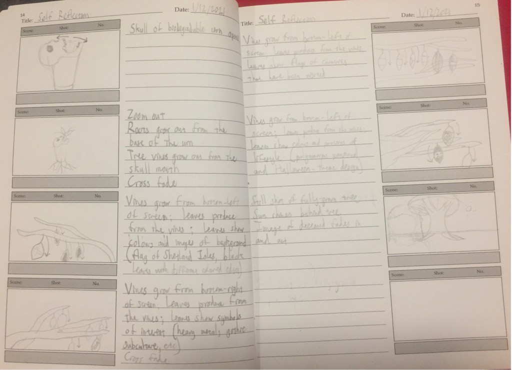 As shown in the storyboard, there were more leaves planned to be created that would have highlighted more of John’s love for the gothic subculture and heavy metal, as well as other hobbies and interests. However, due to time constraint, this part of the project had to be left out of the final output. Although, it may be feasible to revisit this project at a future time where more parts of the tree could be shown, and more leaves cover more aspects of John’s life.