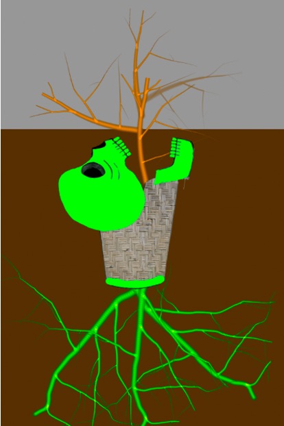 2: Zoom out. Roots grow out from the base of the urn. Tree vines grow out from the skull mouth. Cross fade.